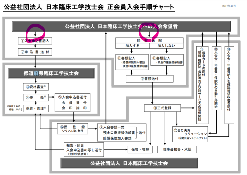 • 地方臨床工学技士会から資料が届くので、日本臨床工学技士会あてに入会申請