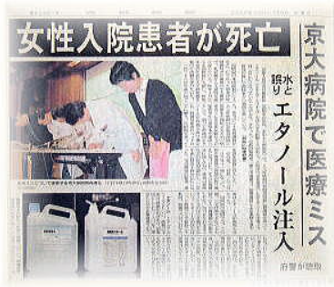 アルコール中毒を引きおこして死亡させた医療事故です。